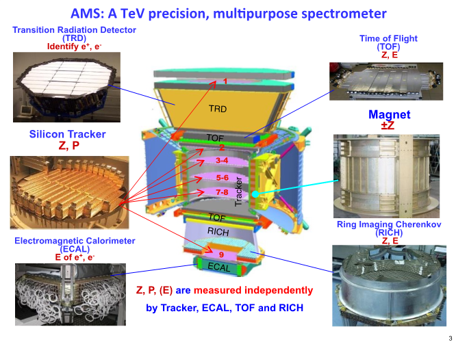 AMS Deneyi (Şekil 1) uzayda kullanım için geliştirilmiş en güçlü ve hassas parçacık fiziği dedektörüdür ve fizikteki, yeni ve heyecan uyandırıcı konuları keşfetmektedir. Yüklü parçacıkları ve çekirdekleri, evrendeki orijinal kaynaklarında oluştuğu haliyle ve Dünya atmosferine çarpıp bozuşmadan önce inceleyebildiği için, bir manyetik spektrometre olarak AMS, fizik araştırmalarında eşsizdir. Daha önceki benzer ölçümlere göre AMS'nin doğruluk ve hassaslığındaki gelişmeler, uzayda geçirdiği uzun zaman, geniş gözlem alanı, yedek sistemlerle donatılmış olması ve CERN test demetlerindeki titiz kalibrasyonu sayesinde mümkün olmuştur. Bu özellikler AMS'nin verilerinin ~ %1 doğrulukla analiz edilebilmesini sağlamıştır. Bu veriler ise fizik ve astrofizik camiası tarafından yeni teoriler geliştirilmesini gerektirebilir.