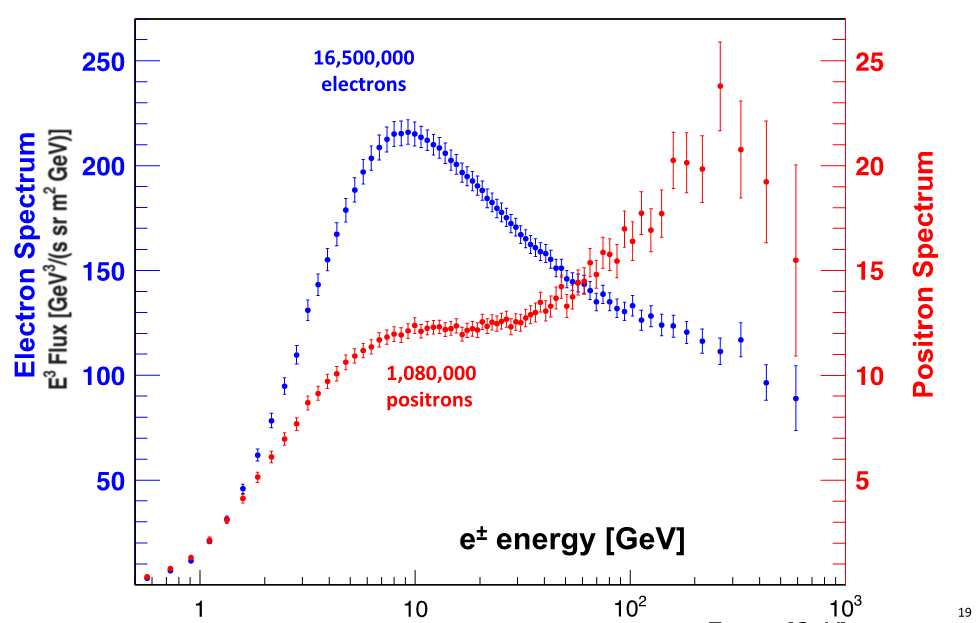 Şaşırtıcı bir şekilde, 60 GV bükülmezliğin (yük başına düşen momentum yahut rigidite) üstünde, pozitronlar, protonlar ve karşıt-protonlar aynı bükülmezlik bağımlılığı gösterirken, elektronlar tamamen farklı bir bükülmezlik bağımlılığı göstermektedir (Şekil 3). Elektronlar ve pozitronlar, galaktik manyetik alanlarda yol alırken birbirleriyle tamamen aynı miktarda ve proton ile karşıt-protonlardan çok daha fazla enerji kaybederken, bu sonucun ortaya çıkması gerçekten de çok ilginçtir.