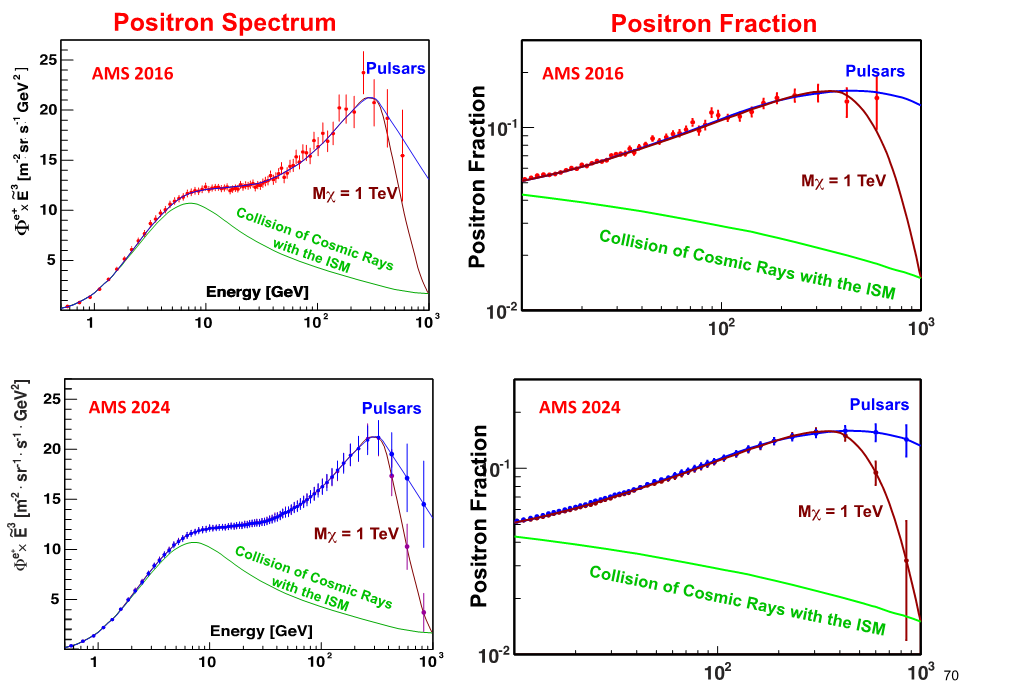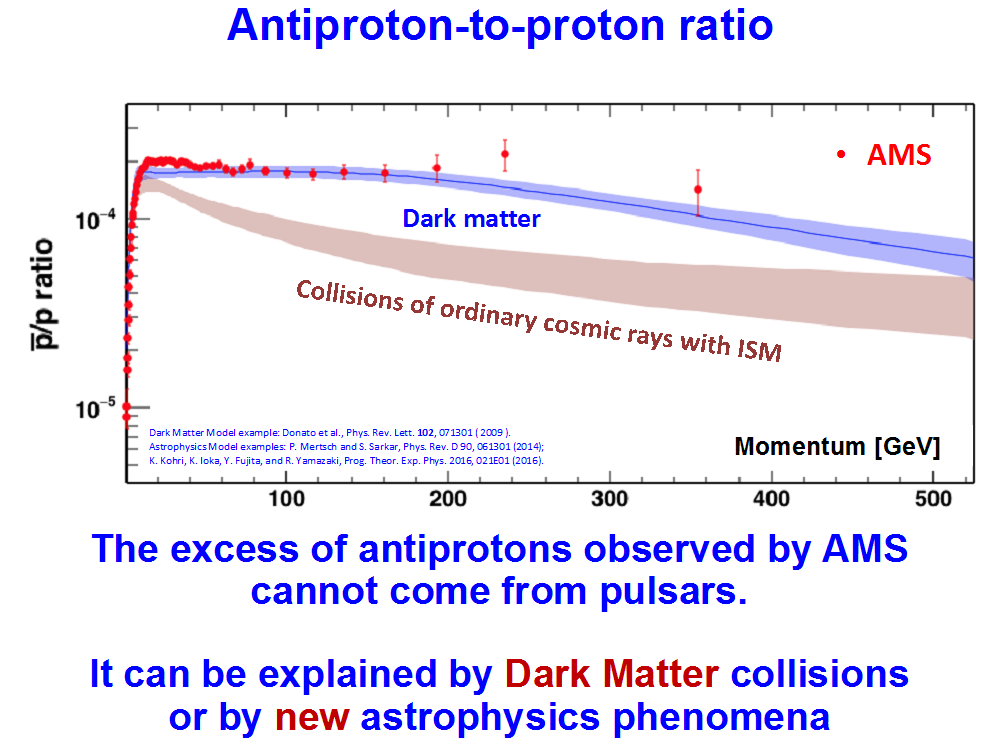 Şekil 7. AMS tarafından gözlemlenen karşıt-proton fazlalığı pulsar kaynaklı olamaz. Bunlar ancak karanlık madde çarpışması sonucu bozuşması veya başka yeni astrofizik modelleriyle açıklanabilir.